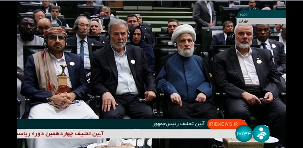 ـ در تحلیف ریاست جمهوری یک قاب زیبا ماندگار شد؛ اسماعیل هنیه، شیخ نعیم قاسم و زیاد النخاله از سران جبهه مقاومت در کنار یکدیگر نشسته بودند.